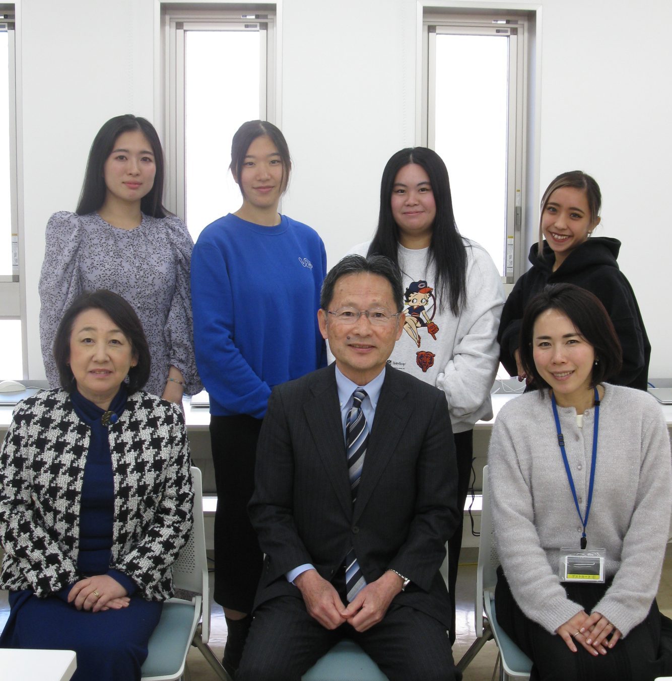 去る1月17日、留学1期生と太田学長、石川学部長、松﨑先生(留学ゼミ担当)とで懇談会を開き、1期生全員がオーストラリアの保育士資格CertificateⅢを取得できたことや留学生活などについて語ってもらいました(1名は体調不良のため欠席)。