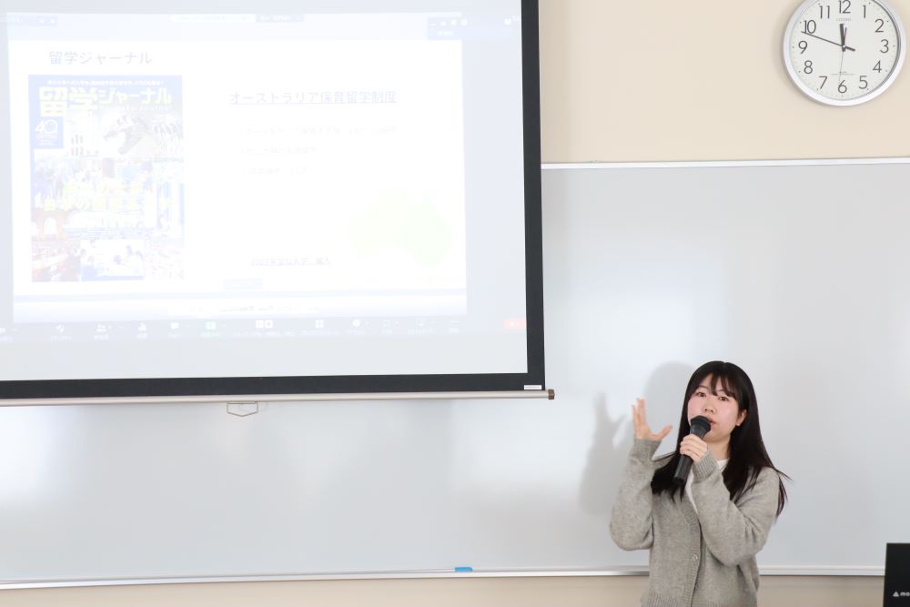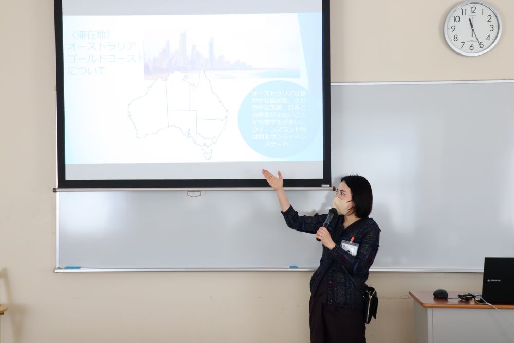 その後、現在留学中の学生をzoomでつなぎ、現地の街の紹介や状況をレポート。最後に12月に帰国した学生から、留学の魅力や経験したこと等をお話しました。