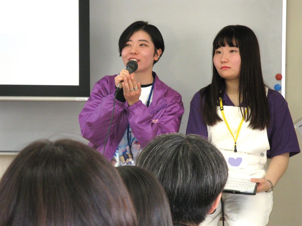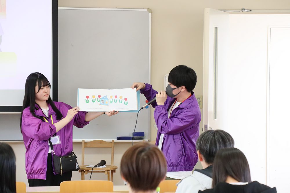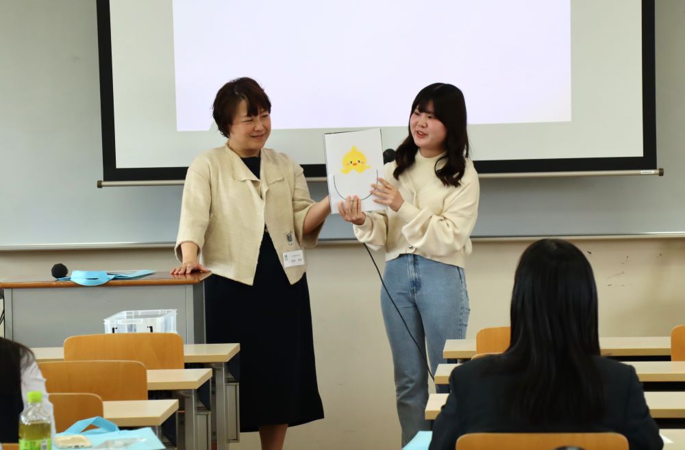 学生2名からは実習での体験をお話し、実習先で行った「手作りの仕掛け絵本と歌」「紙芝居」の実演を披露しました!