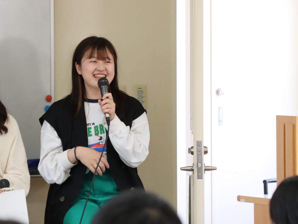 ・学生さんの話をたくさん聞くことができて、楽しい時間でした。先生も学生も皆、笑顔でお話されていたり、優しい相づちでしたので聞いている私達も優しい気持ちと柔らかい空気を感じながら過ごしていました。ありがとうございました