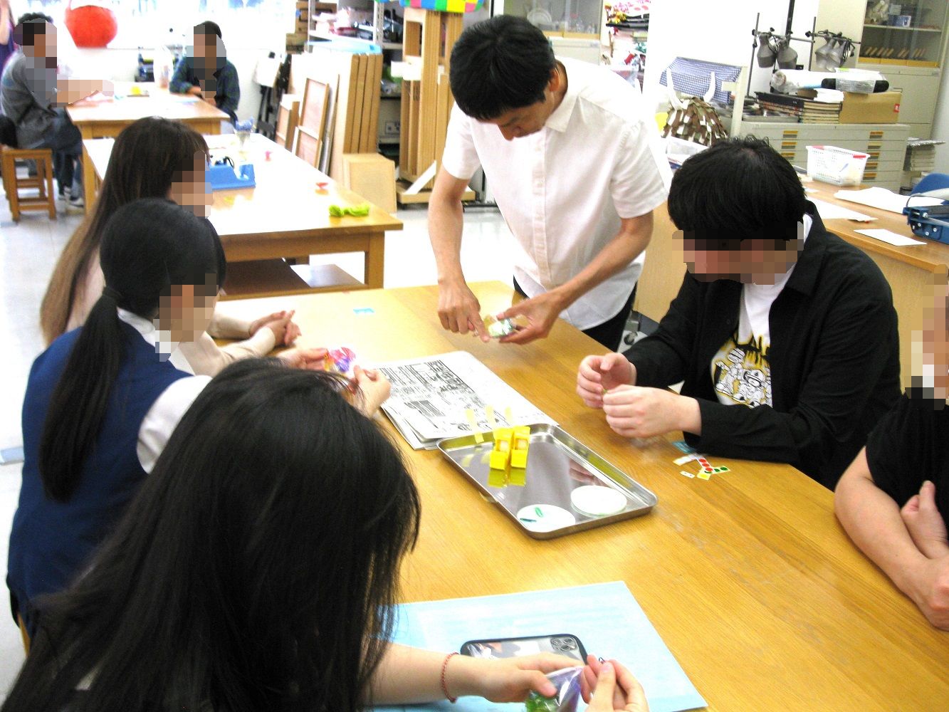 担当教員による「子供の成長」や「教材の特性(新聞紙・左利き用はさみ等)」の説明により、大学の授業の雰囲気を感じてもらえたことと思います。