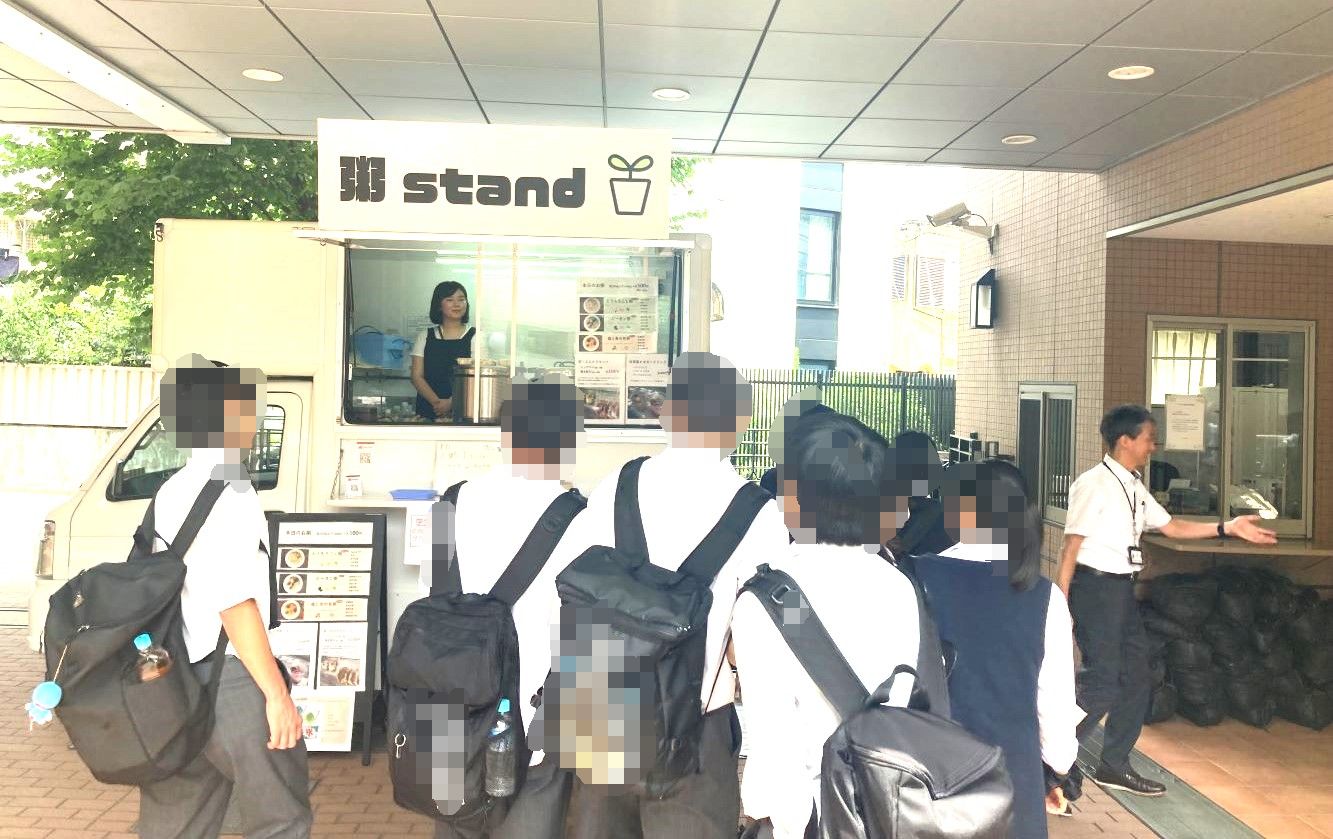 続いて、4号館へ移動です。大学のランチタイム 本日のキッチンカーも見学いただきました。