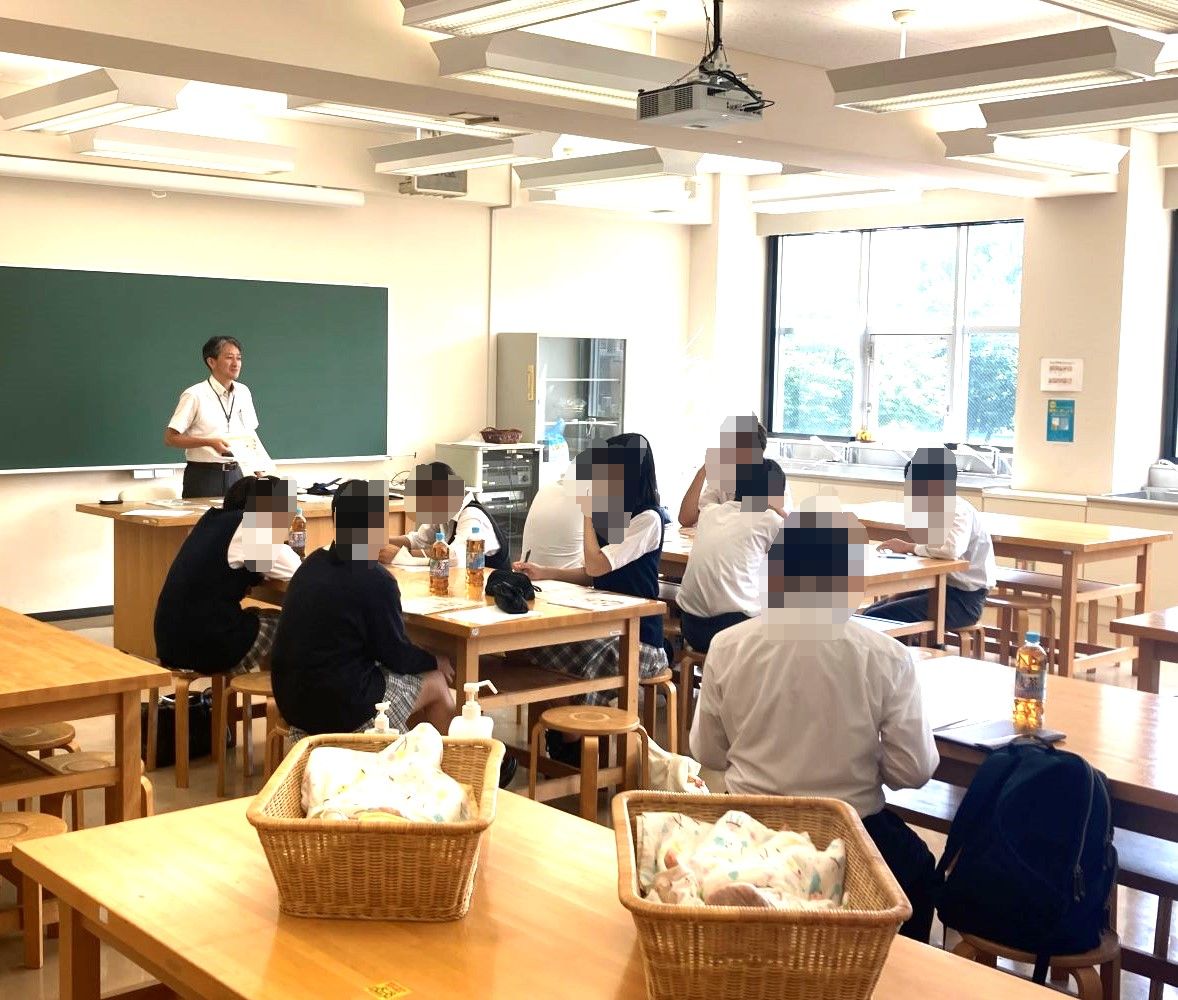 実際に、授業で使用する赤ちゃん人形を抱っこしていただきました。